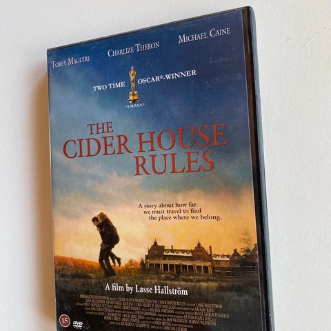 The Cider House Rules DVD film. Spillefilm i sjangeren drama. Original tittel: "The Cider House Rules". Med blant andre Tobey Maguire, Charlize Theron og Michael Caine. Format: DVD, region 2. Aldersgrense 15 år. Tekst og lydspor som oppgitt på omslaget.