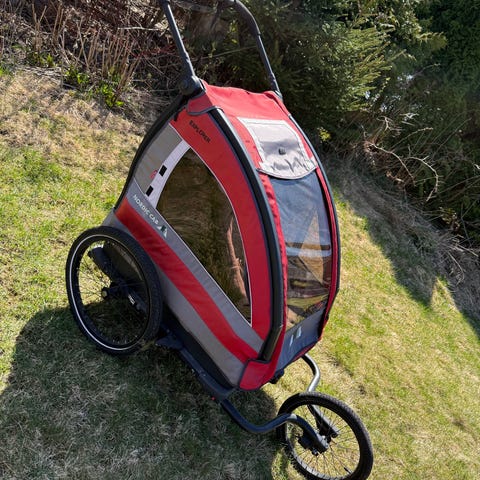 Perfekte sykkel vognen som fungerer til det meste. Kan også få ny født sete til denne som fungerer for små babyer.
