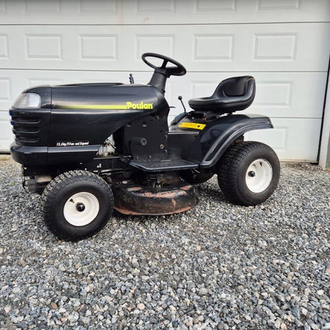 Batteriet virker til å ha tatt kveld i løpet av vinteren, men den starter lett med hjelpestart og går fint. Kjøper må påberegne å montere et nytt batteri.