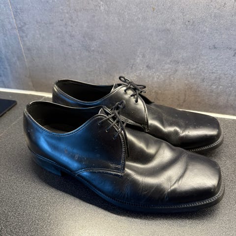 Brukte Selected pensko i størrelse 42. Klassiske svarte snøresko med lav hæl og kvadratisk tåform.