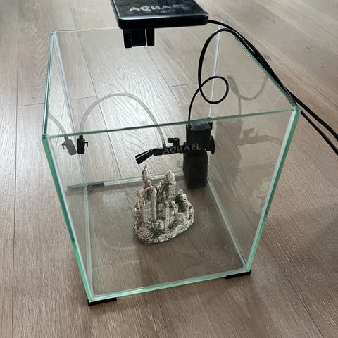 Selve akvariet ble kjøpt på dyrebutikken buddy for 1399kr.