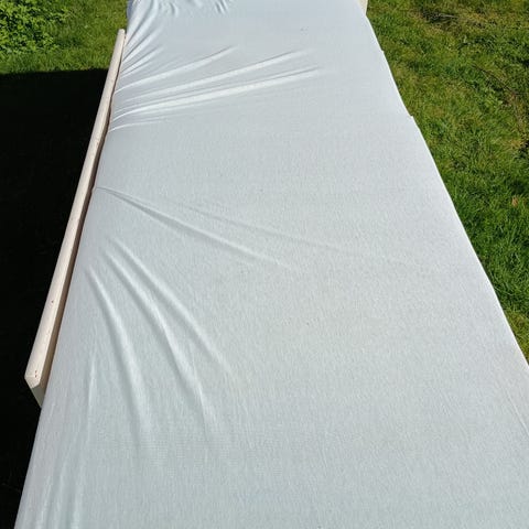 Gis bort pga overgang til ny seng, har en del flekker og en rift i siden, fylt brukenes. Og kan sikkert lappes. Gis bort!
