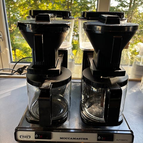 Pent brukt dobbel Moccamaster til salg, som gir 20 kopper på 6 minutter.