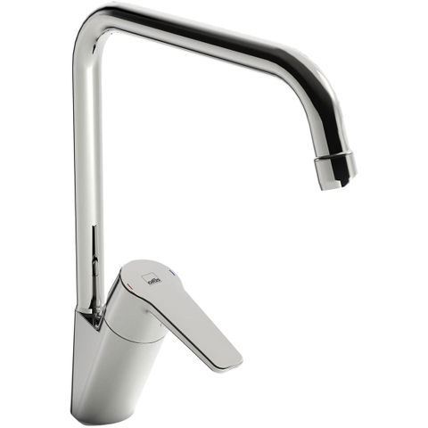 Et slankt og elegant blandebatteri til kjøkkenet med spaken på høyre side. Sentrert kran som er plassert midt på blandebatteriet. Blandebatteriet er utstyrt med oppvaskmaskinstenging.