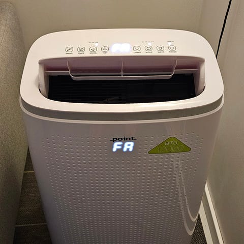 Enheten er en frittstående mobil aircondition med utluftingsslange. Den har betjeningspanel på toppen med digitalt display og flere funksjonsknapper, samt medfølgende fjernkontroll. Luftutslipp skjer via frontgitter, og på baksiden finnes luftfilter og tilkobling for slange.