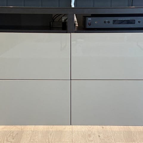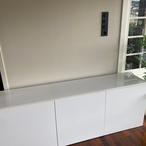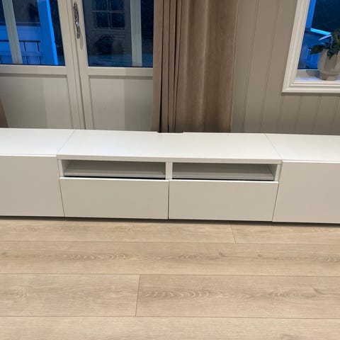 Har blitt brukt som tv-benk og de to midterste modulene har hull til ledninger i bakplata.