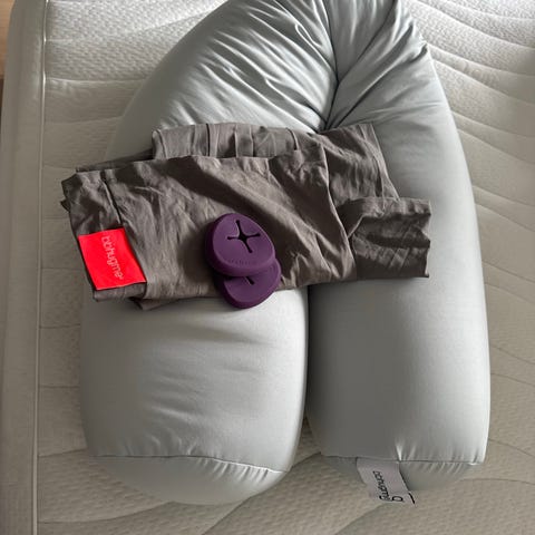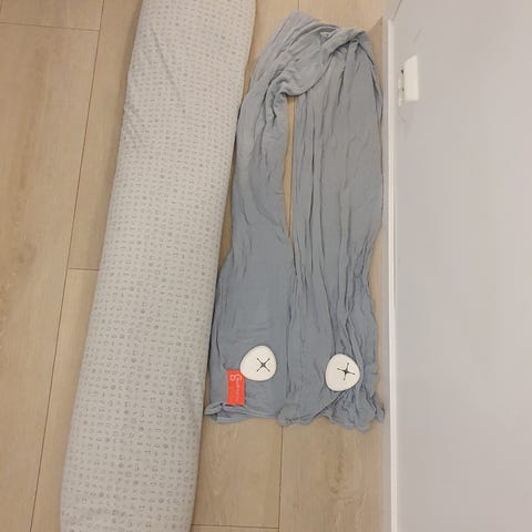 Gravid-/ammepute fra BB Hugme. Superdeilig å bruke som støtte til magen og hoftene når man sover, og til å ha i ryggen hvis man ammer liggende. Kan også fint brukes til sittende amming. Det følger med to trekk og oppbevaringspose. Ingen hull/flekker. Kommer fra dyrefritt, røyk- og parfymefritt hjem.