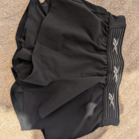 Løpeshorts for dame i størrelse S. Den har under-shorts, og lommer med glidelås på begge sider. Veldig lite og pent brukt.