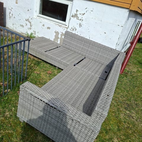 Gir bort et hjørnesofa og en tre benk. Sofa er veldig grei å site på, trenger litt fiksing her og fer men ellers veldig grei.