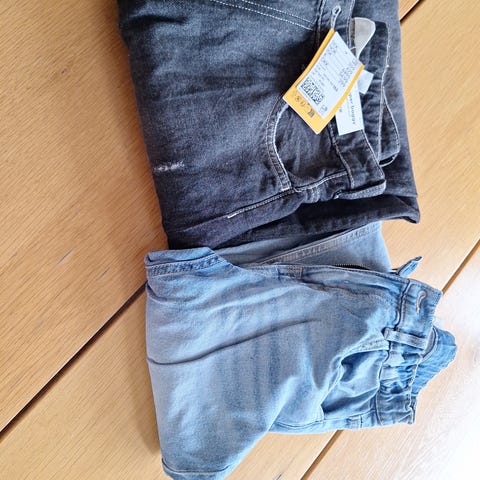 klespakke, 4 forskjellige dongeribukser