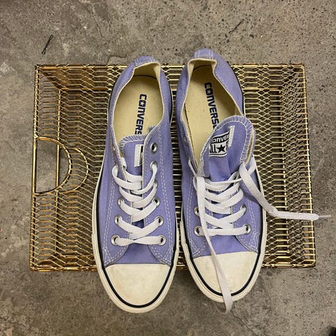 Converse sneakers i størrelse 38. Modellen er lave canvas-sko i rød farge med hvite lisser og gummisåle. Skoene har klassisk Converse-design med gummitå og mønstret yttersåle for grep. Passer til hverdagsbruk og fritid.