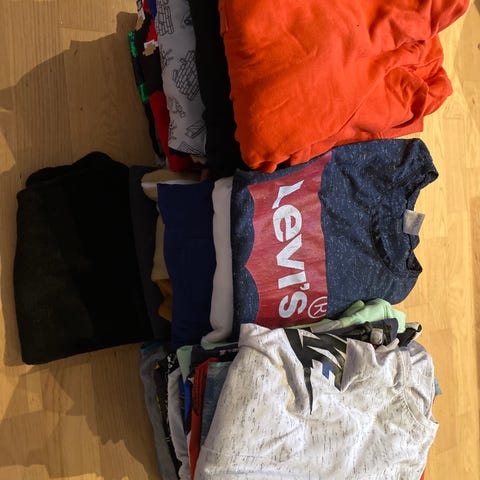 Masse klær til gutt. T-skjorter, gensere, skjorte og bukser. Pent brukt uten flekker og hull.