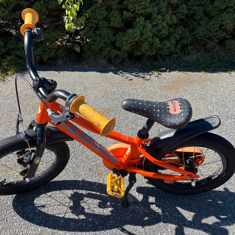 Flott barnesykkel som er enkel i bruk og nærmest helt vedlikeholdsfri. Letthåndterlig pedalbrems bak, felgbrems foran. Vekt: 10 kg.