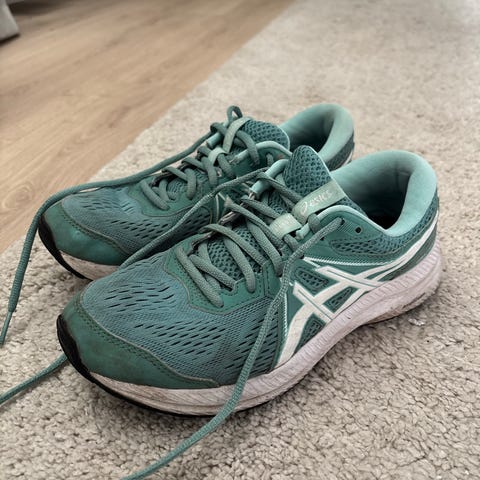 Asics løpesko i størrelse 39, brukt en gang. Modellen er for løping og har overdel i pustende meshmateriale. Mellomsålen har dempesystem (4D Guidance System) som gir støtte under løping. Yttersåle i gummi for grep mot underlaget. Passer til løping og annen trening der det er behov for lette og dempede sko.
