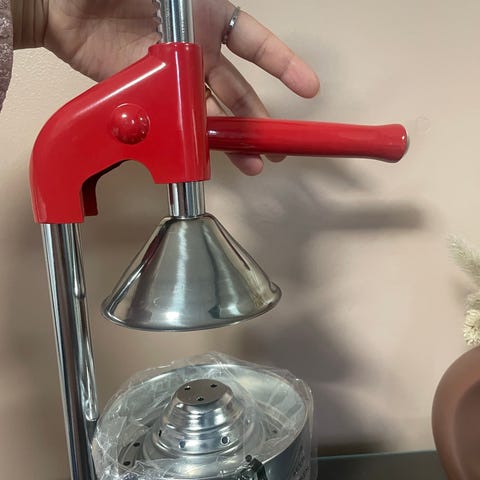 OBH Nordica sitruspresse i rød farge. Elektrisk modell med avtakbare deler som kan tas fra hverandre for enkel rengjøring. Egnet til pressing av ulike typer sitrusfrukter som appelsin, sitron og lime. Enheten har ledningsoppbevaring under basen for ryddig lagring når den ikke er i bruk.