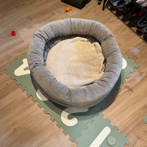 Snuseleke hvor du gjemmer godbiter i fleece oppi skålen. Leken er kun 18 cm i diameter så passer best for små hunder. Selges for 100 kr.
