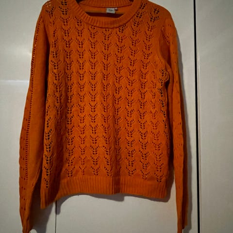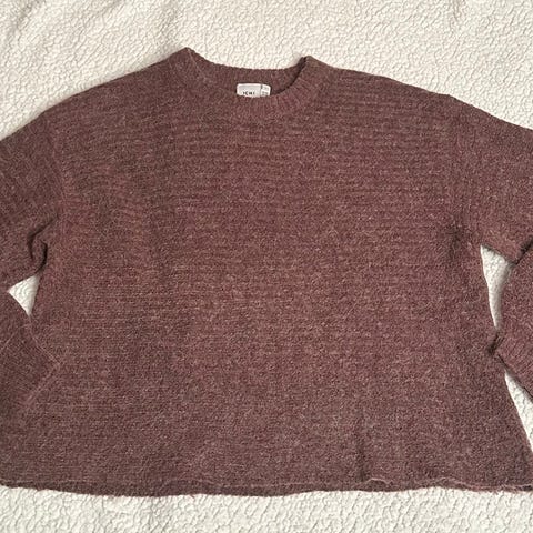 ICHI Shmercy genser for dame i størrelse L. Genseren er brun og har rund hals og lange ermer. Materialet består av 49 % akryl, 46 % polyester og 5 % ull, som gir et mykt og lett teksturert uttrykk. Passer til hverdagsbruk og kan kombineres med både bukser og skjørt.