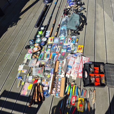 Fiskesett for fluefiske og vanlig fiske. Inneholder blant annet flueboks med ulike fluer, fiskesnelle med snøre, flere bokser med søkker, dupp, sene og diverse smådeler. Egnet som grunnleggende utstyrspakke til ferskvannsfiske eller lett sjøfiske, der det trengs variasjon i fluer, søkker og annet tilbehør.