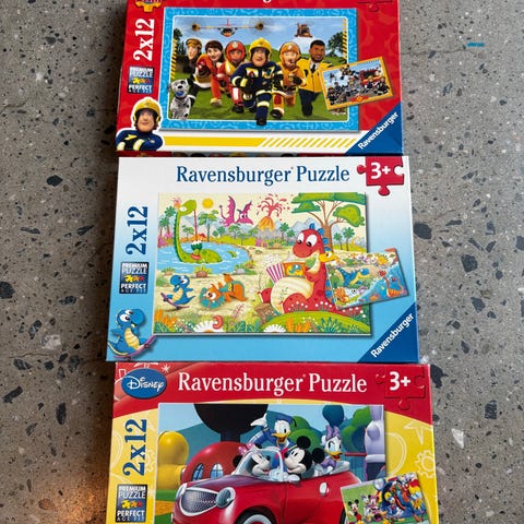 Hver eske inneholder 2 puslespill med 12 brikker i hvert puslespill.