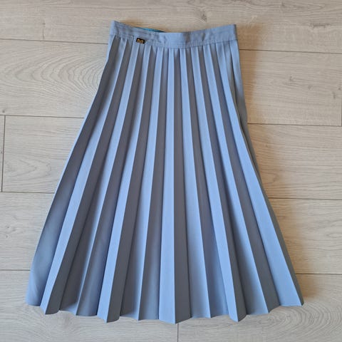 Ubrukt beige -blå plissert skjørt kjøpt in England i st.L(14)