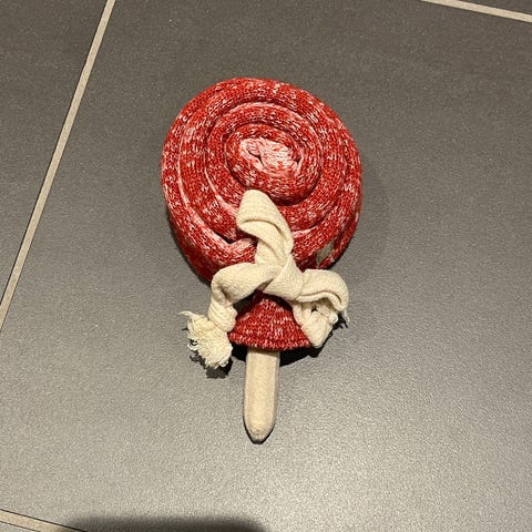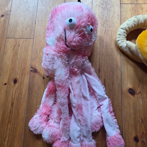 Snuseleke formet som en bagel. Pent og lite brukt. Svært unik da den er håndlaget fra Australia så ikke mulig å få tak i Norge. Noen deler er sydd fast mens egg og bacon er løse. Selges for 200 kr.