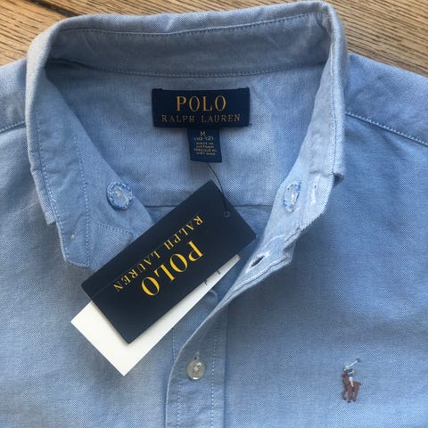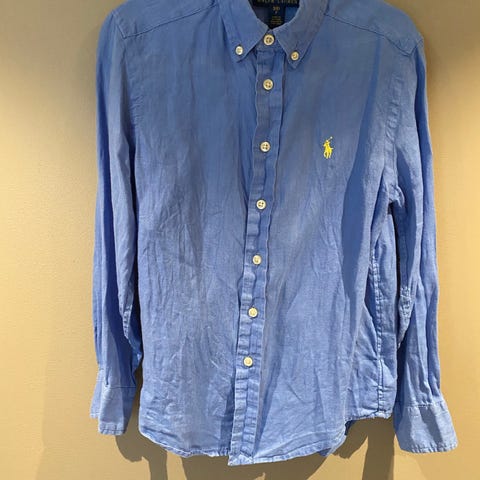 Polo Ralph Lauren linskjorte str 10-12 år, brukt få ganger. Liten i størrelsen. Har også tilsvarende i hvit.