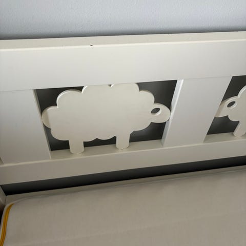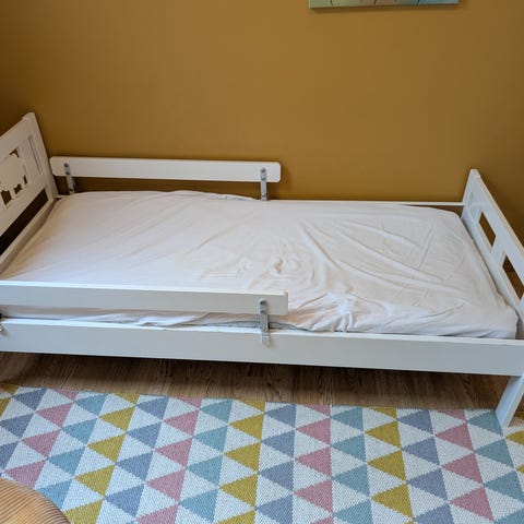 Barneseng med avtagbart sengehest (ny seng koster 1450 nok).