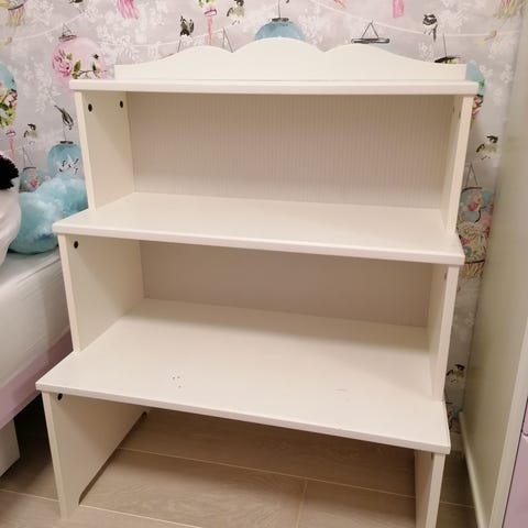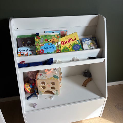 Pent brukt bokhylle/oppbevaring til barnerom.