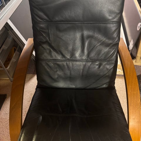 Stolen er brukt, men i fin stand med normal slitasje i skinnet (se bilder).