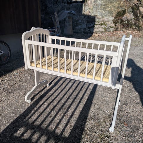 Godt brukt bedside crib. Litt bruksmerker (kan sende bilde om ønskelig). Men ellers helt fin i bruk. Selges som den er. Må hentes i vennesla 😊