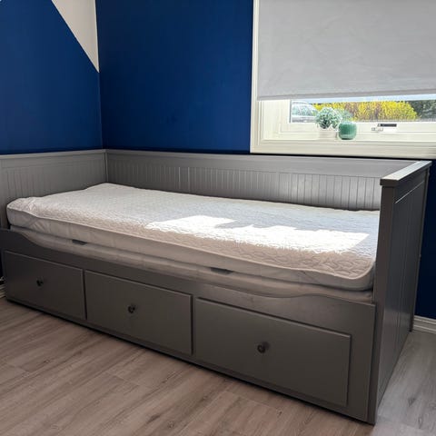 Madrass og sengegavl medfølger hvis ønskelig.