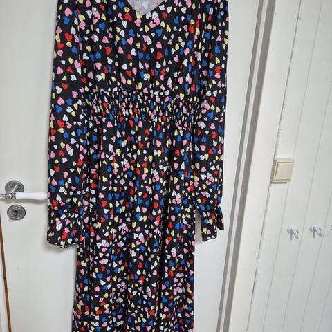 Stoffet er elastisk, og passer til str. L/XL. Kjolen er fotsid til en på 1,68.
