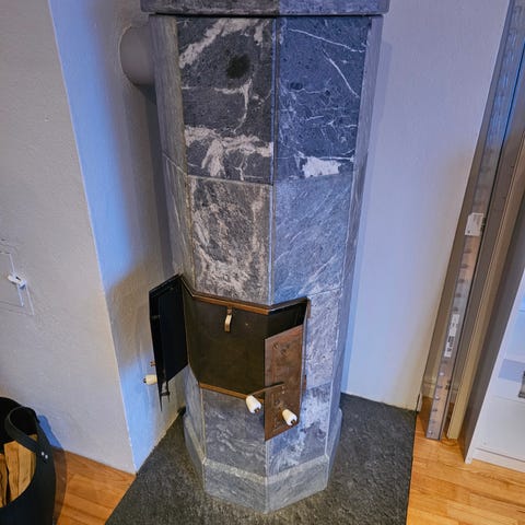 Klebersteinspeis modell Kaira 4 fra 2016 - så og si ubrukt. Ovnen er 166 cm høy. Røykrørutgang er plassert bak på ovnen ca 146 cm høyt.