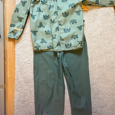 Pent brukt regntøysett str. 122