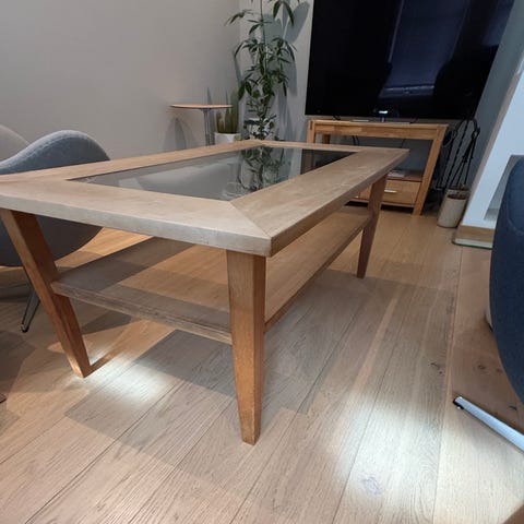Salongbord med glasstopp selges billig. Se bilder for detaljer.