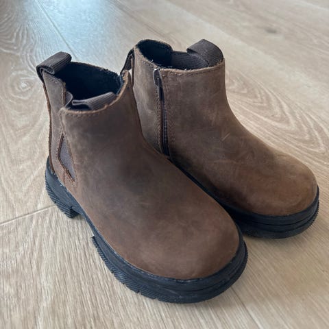 Timberland boots / skinnsko i str 32. Ankelhøye sko i brunt skinn. Knapt brukt.