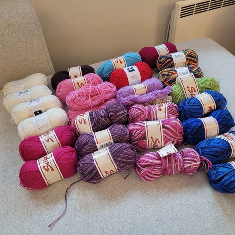Div Restegarn, det er både heile nøster og halve nøster og noen er det bare litt igjen. Selges samlet kr 500 + porto.
