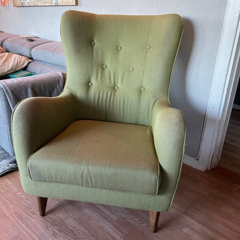 Lenestol, romslig og behagelig.
