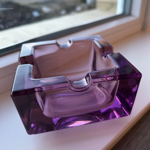 Krystall skål og et krystall askebeger selges. Kr 500 for skålen og kr 300 for askebegeret.