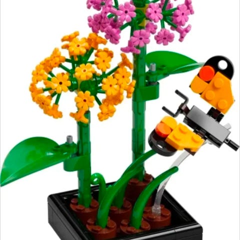 LEGO Botanical Collection byggesett med solsikker. Settet består av LEGO-klosser som bygges til dekorative solsikker med stilker og blader. Egnet som byggesett for eldre barn, ungdom og voksne, og kan brukes som pynt eller som del av andre LEGO Botanical Collection-modeller.