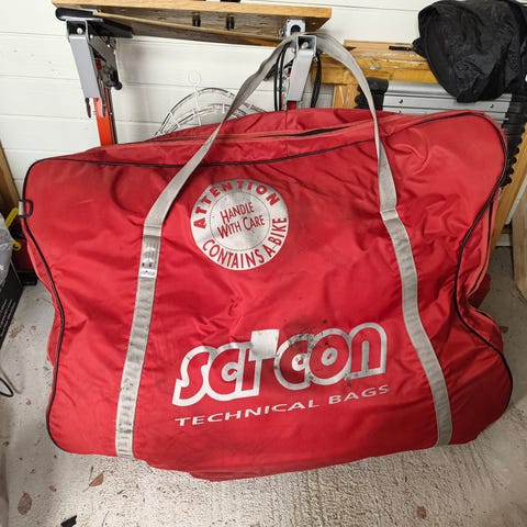 Bagen er kun brukt et par ganger. Medfølger styrefeste, gaffelfeste til skivebremser og cover til drivlinje. Alt av rør, skinner, stropper og glidelåser er intakt og fungerer som det skal