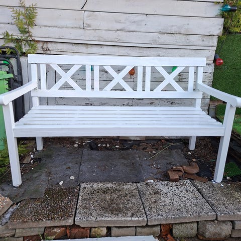 Har malt den selv. Godt brukt, men fortsatt stødig og i fin stand.