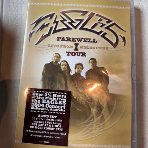 Eagles «Hell Freezes Over» og «Farewell I Tour»musikk-DVDer.