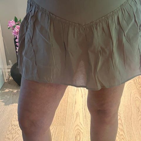 Zara shortsskjørt for dame i størrelse XL. Shortsen er svart og har en enkel, rett fasong med kort lengde. Jeg kjøpte to likedane fordi jeg likte dem så godt. Men har bare brukt den ene. Den andre har ligget i skapet så litt skrukkete.