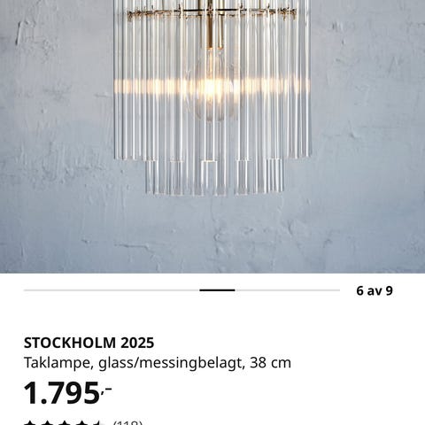 Nydelig lysekrone med glassprismer. Den er ikke så stor at den kan henge over stuebordet -sjekk bildet de jeg har to på badet -det passer den utmerket til. Har bare en nå -den andre er solgt.