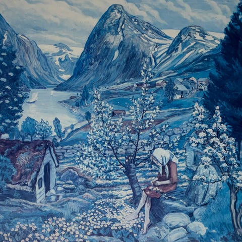 Marzmorgen av Astrup. Trykt plakat. Ca 45x56 cm. Pent rammet inn og fin stand