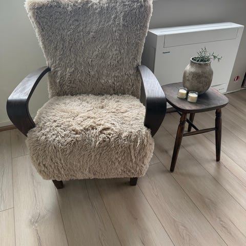 Blå stol med gant teppe og gant pute