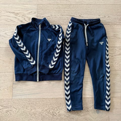 Treningsdress / joggedress fra Hummel i mørkeblå selges. Den var i en pakke vi kjøpte på Finn men denne var for liten her i huset. Tror det er nærmere str. 128 enn 134.