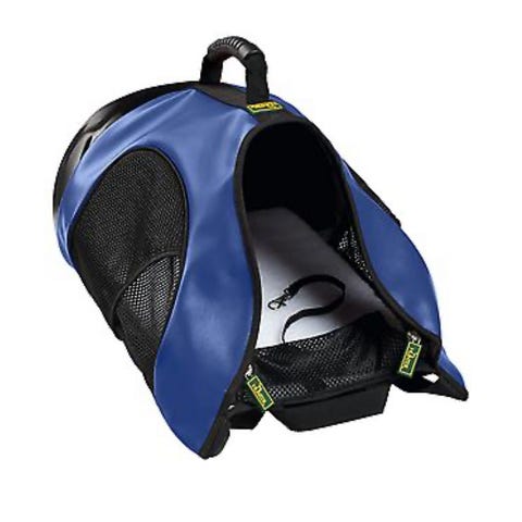 Hunter Taylor hunderyggsekk og bæreveske i blå farge. Designet for bæring av hunder med komfortable stropper og solid konstruksjon. Passer til små til mellomstore hunder. Laget av slitesterkt materiale med polstret innside for dyrets komfort