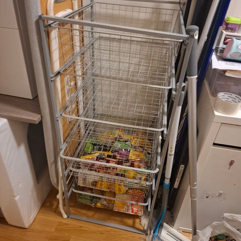 Konsollbord fra Søstrene Grene gis bort, da den ene "listen" på siden av topplaten er i ferd med å dette av og den har noen bruksmerker i overflaten, se bilder. Regner med listen helt fint kan limes på igjen. Håper noen får bruk for det 😊